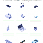 Voici la liste des mots : une caméra – un casque – un clavier et une souris – une clé USB une console de jeux – des écouteurs sans fil – une imprimante – une manette – une montre connectée – un smartphone – un ordinateur portable – une télécommande