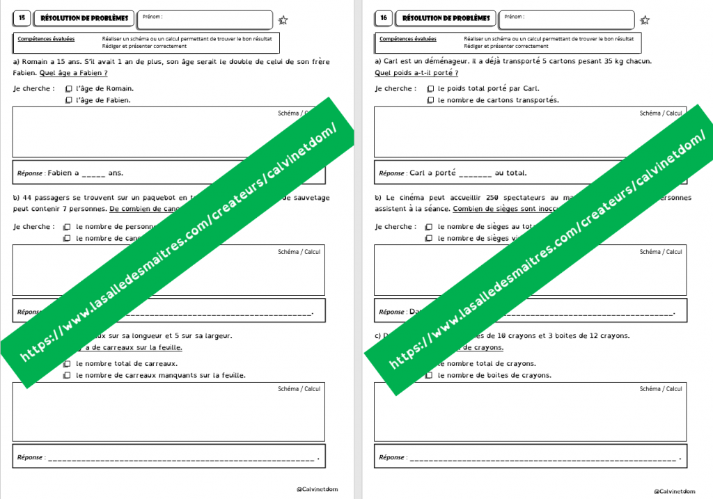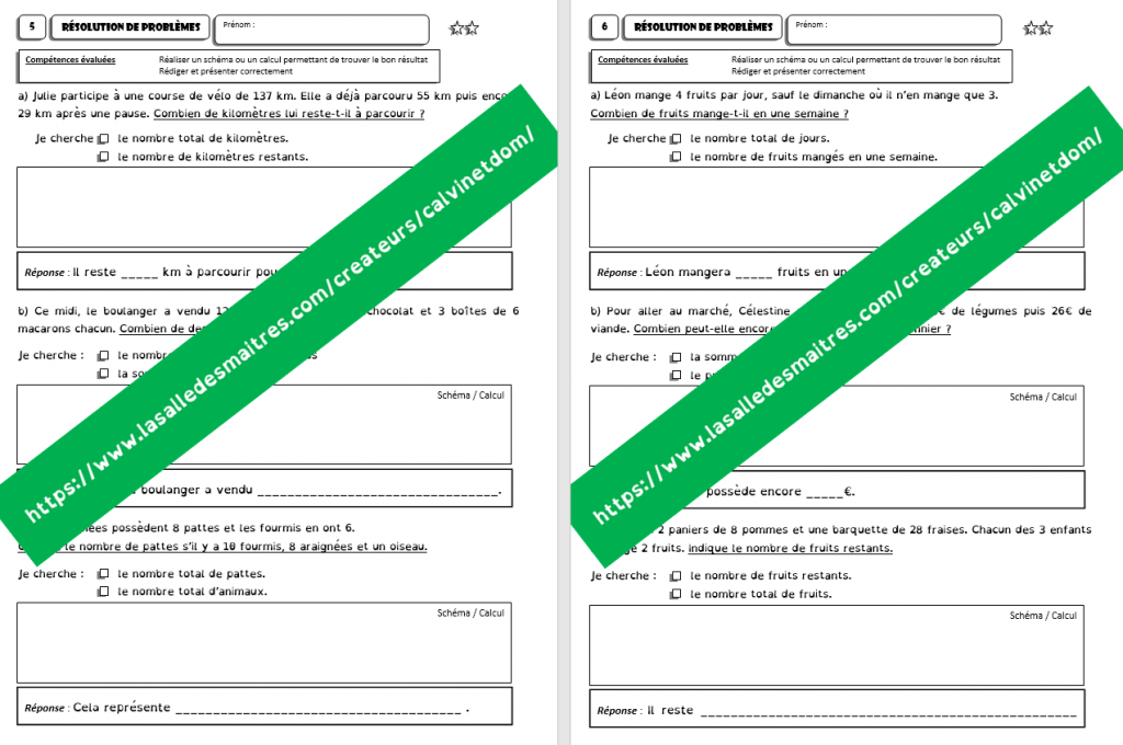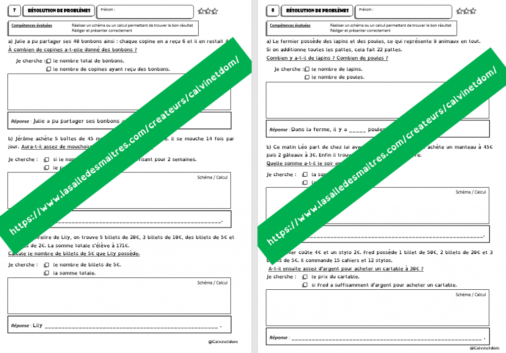 Ce sont des problèmes différenciés sur 3 niveaux. Plus on avance, plus les nombres sont grands et plus les problèmes nécessitent d’étapes.