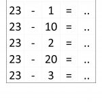 - Ajouter ou soustraire un petit nombre (inférieur à 5) à un nombre à 2 chiffres (25 – 2),