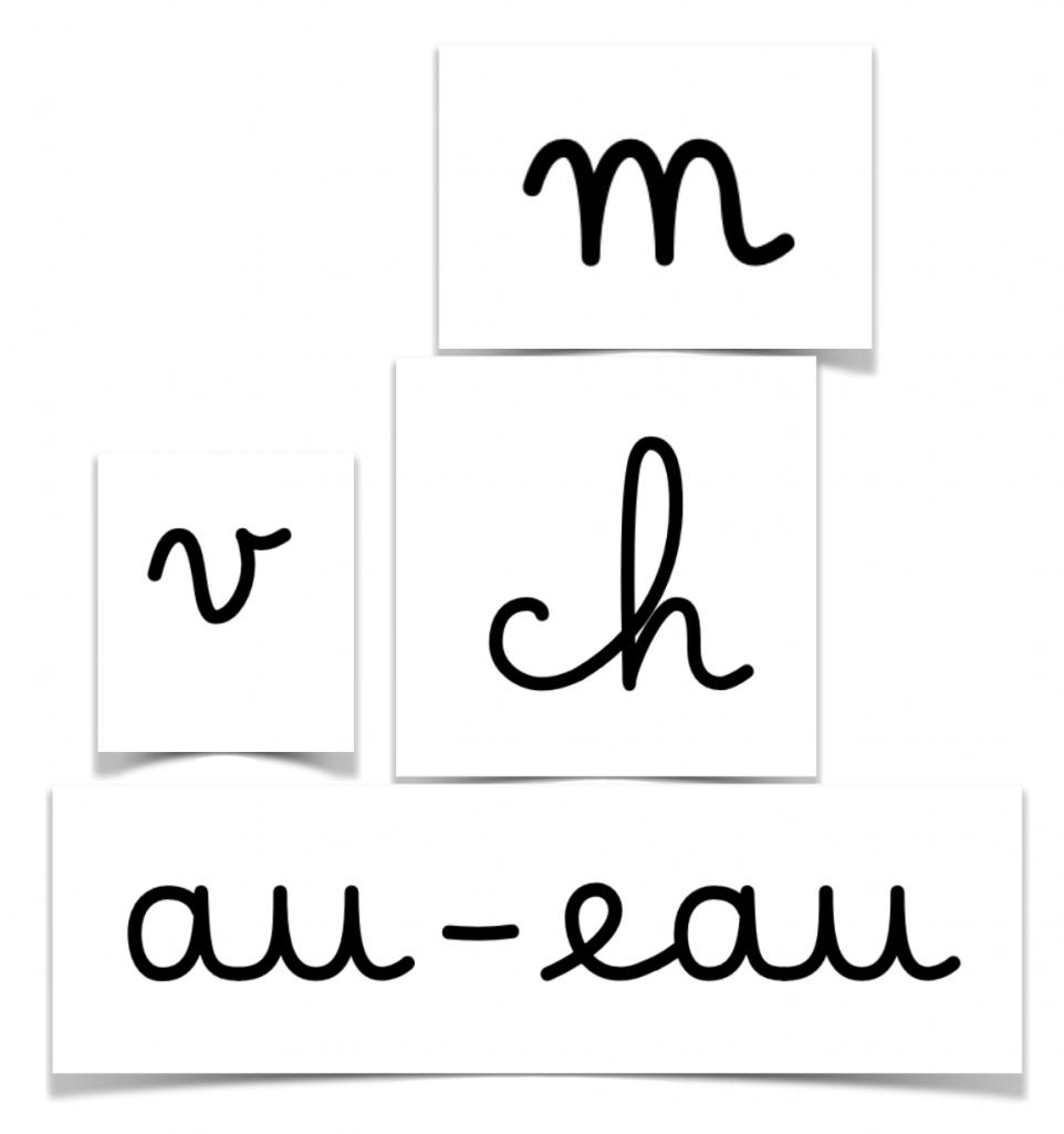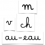 – Fiche N°1 = discrimination visuelle du graphème. Comme préconisé dans les nouveaux programmes, le travail part du graphème vers le phonème. C’est cette correspondance qui est au coeur du travail sur le code.