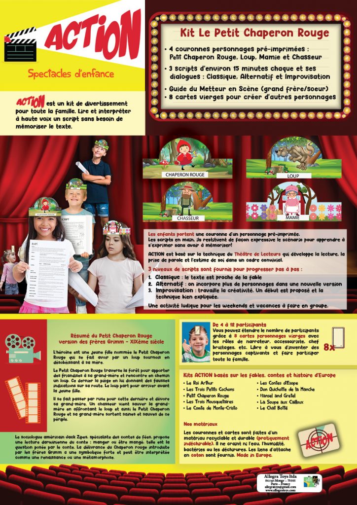 Action est un kit de divertissement pour toute la famille. Lire et interpréter à haute voix un script sans besoin de mémoriser le texte.