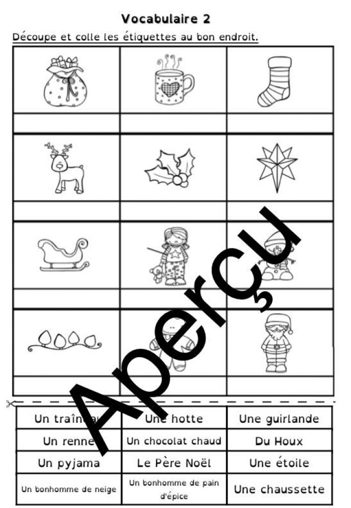 -2 feuilles de vocabulaire : découpe et colle