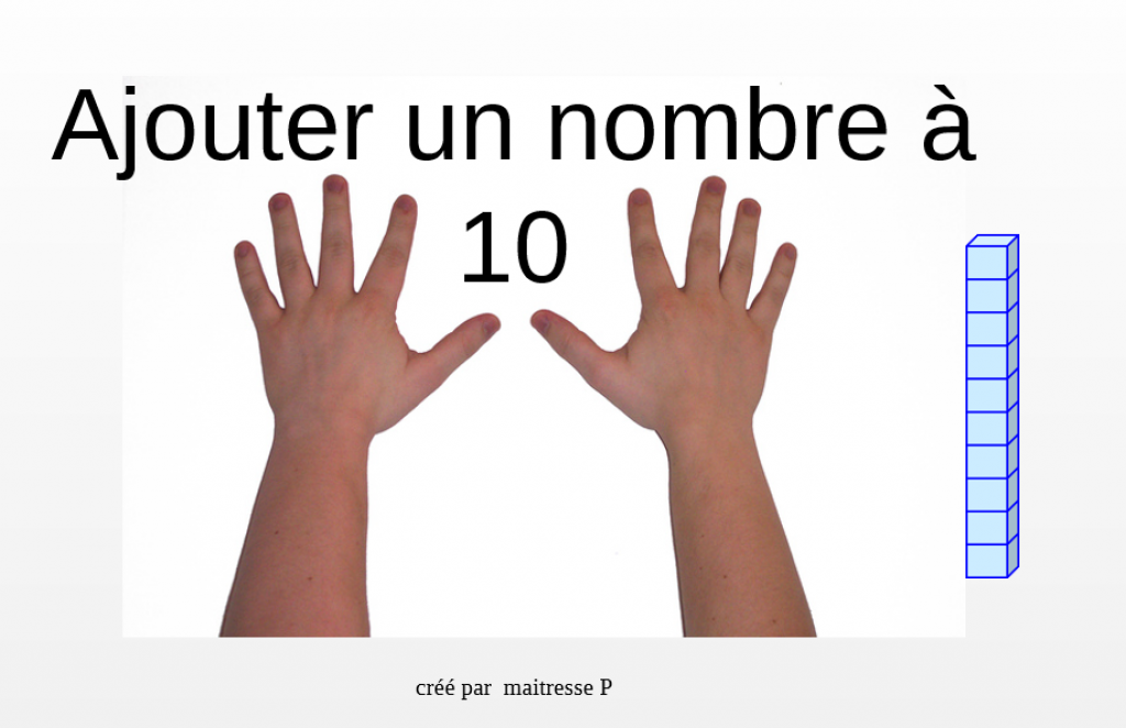 Vous trouverez deux diaporamas l’un pour apprendre et réfléchir sur comment additionner un nombre à 5 et 10 et les doubles.