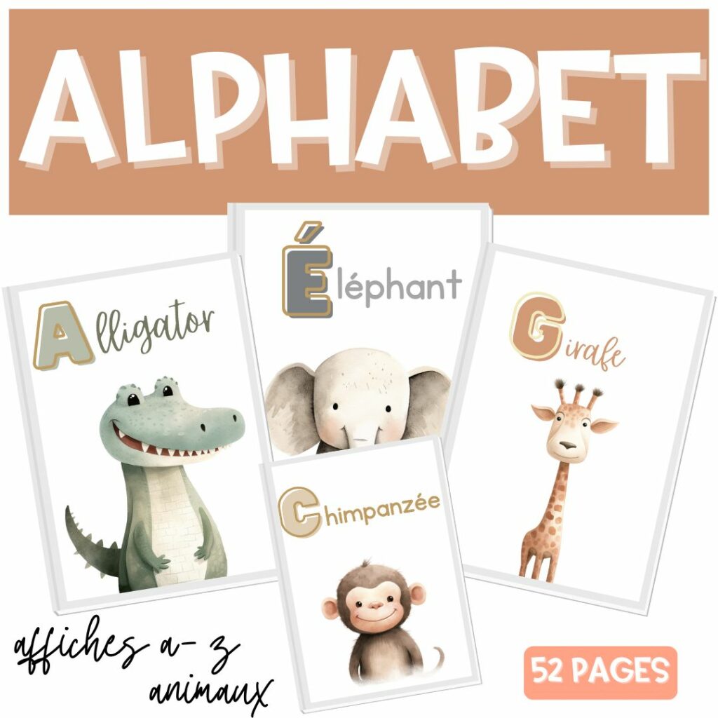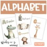 ⭐️ Décorez votre classe avec cet ensemble d’affiches Alphabet des Animaux en français. Chaque lettre est représentée par un animal (A alligator, B baleine…)