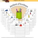 Les feuilles peuvent être placées dans des pochettes plastiques (pour s’entraîner avec un feutre effaçable à sec) et regroupées dans un classeur d’entraînement à l’écriture ; elles peuvent être ensuite photocopiées pour conserver une trace écrite dans un grand cahier.