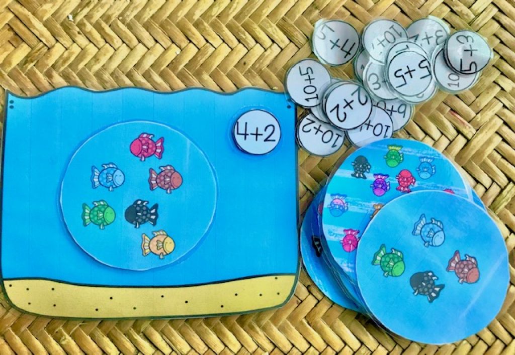=atelier du poisson pour calculer des petites additions de 7 à 10