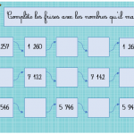 Chaque élève recevra un plateau de jeu : il doit compléter 3 suites de nombres avec des bonds différents ( de 5 en 5, de 15 en 15, de 50 en 50, de 200 en 200…).