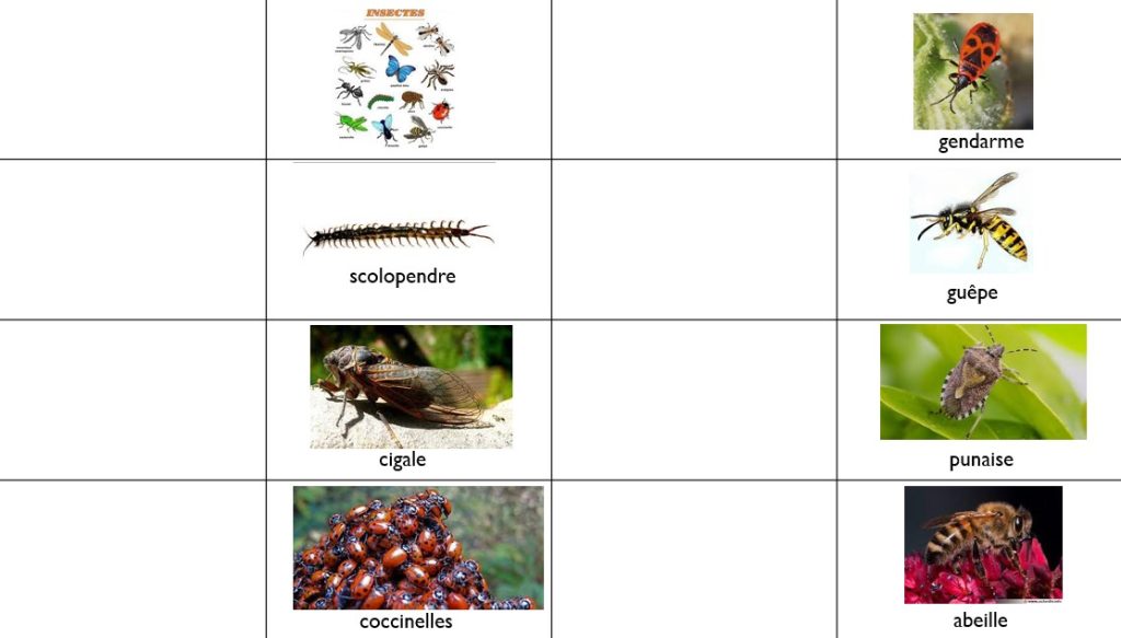 *Utilisation du vocabulaire sur les animaux, les véhicules, les insectes.