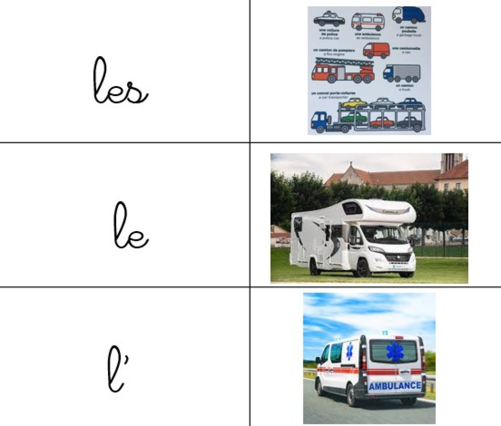 *Mémoriser la lecture des petits mots: le, la, les, l’, un , une , des.