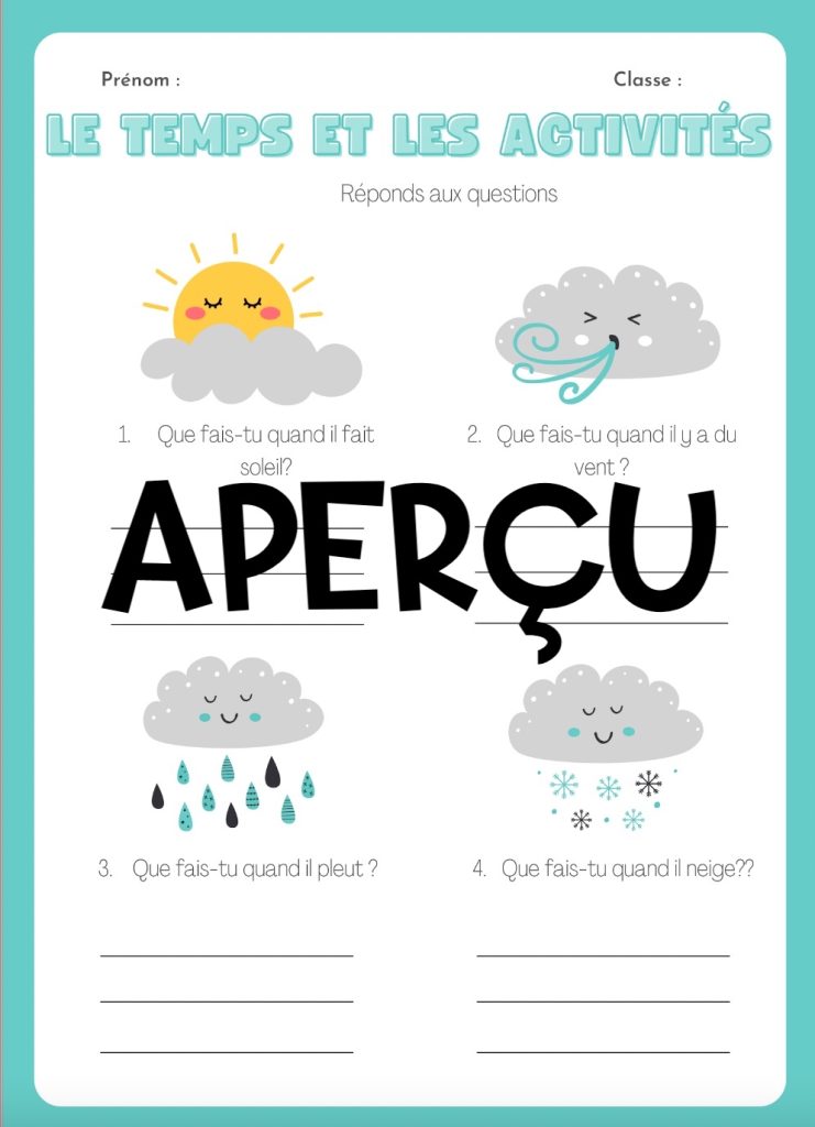 ⭐ Activités et fiches sur le thème de la météo ou du temps
