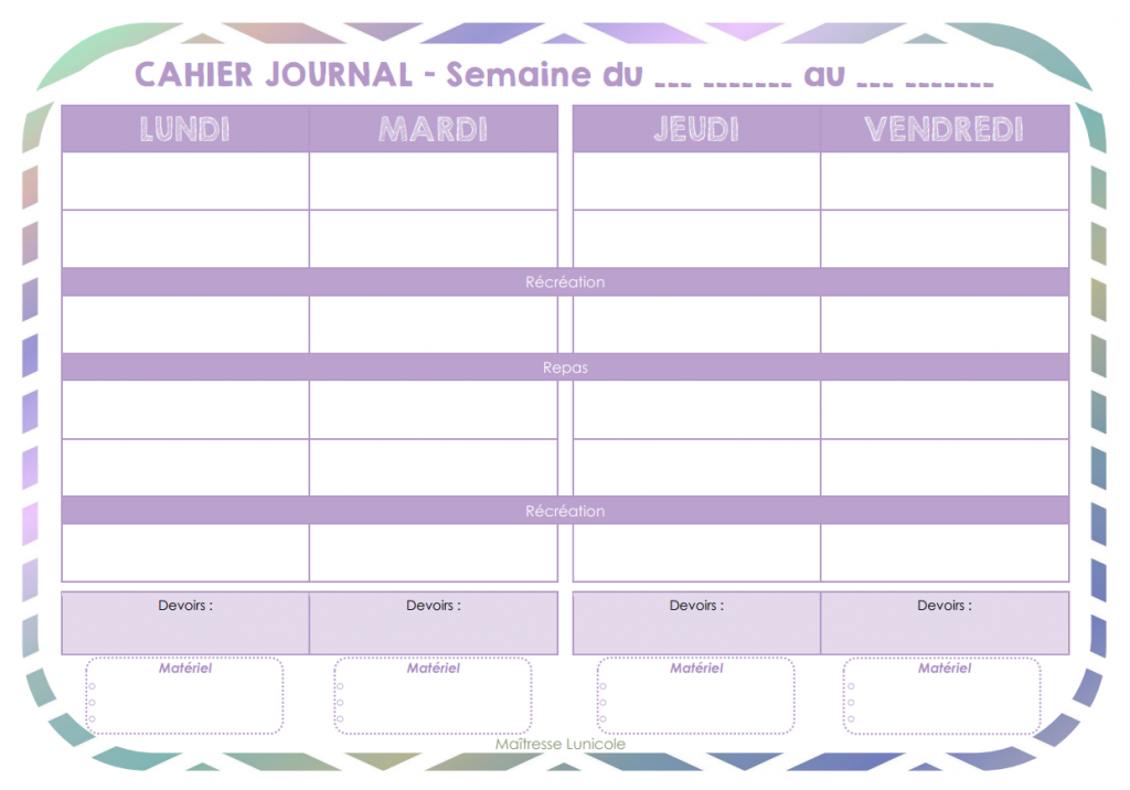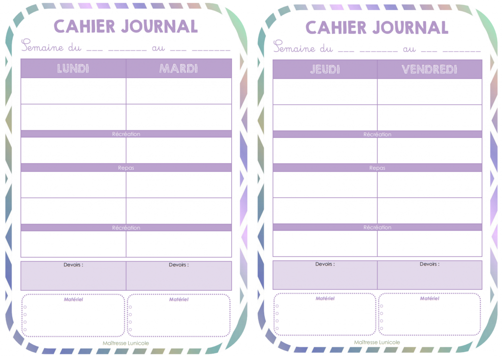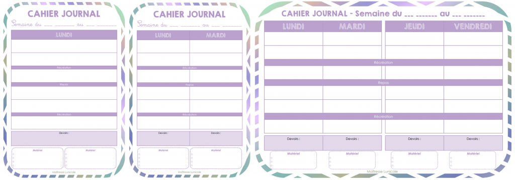 Envie de gagner du temps ? Dans cet article, je vous propose un cahier journal vierge en trois versions : 1 jour par page, 2 jours par page ou 4 jours par page.