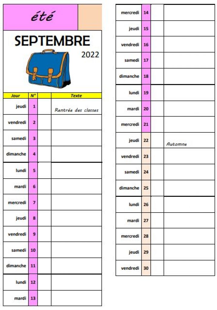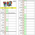 Sur le calendrier, chaque jour, toutes les semaines ou tous les débuts de mois, on complète la colonne 3 avec les événements importants (anniversaires, sorties scolaires….)