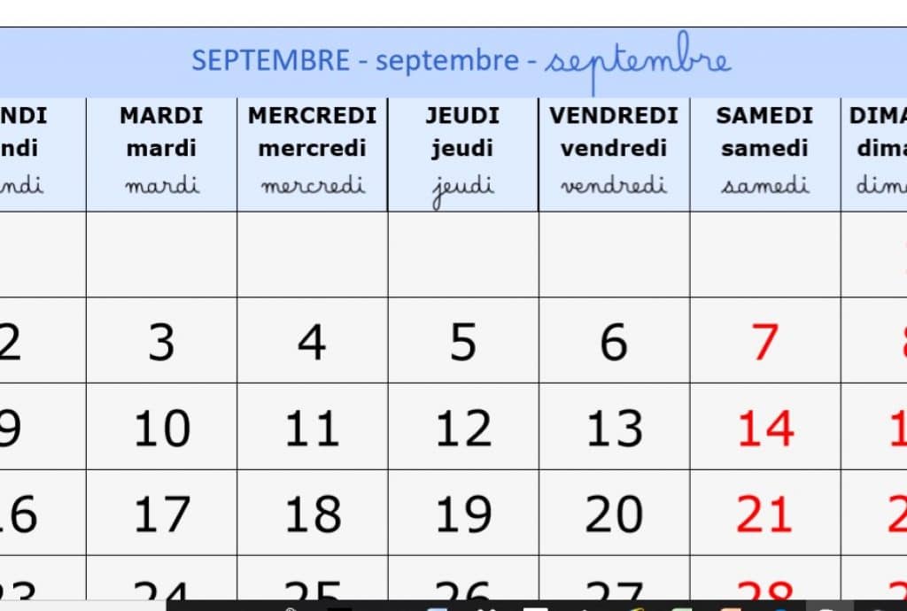 Voici le calendrier de 12 mois en 12 pages A4 avec le nom des mois et des jours dans 3 écritures.
