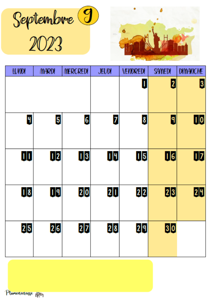 Calendriers mensuels 2023-2024 format portrait ou paysage sans vacance scolaire