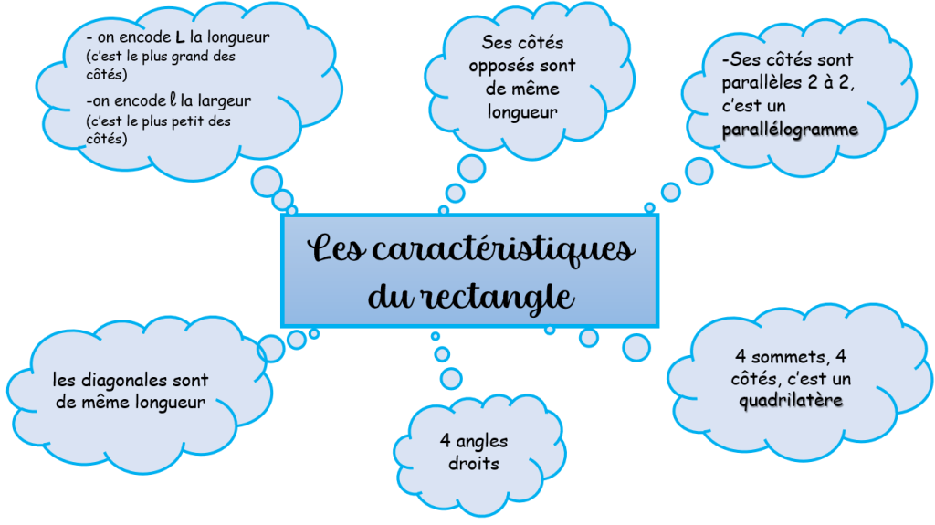 carte mentale récapitulant les caractéristiques du rectangle