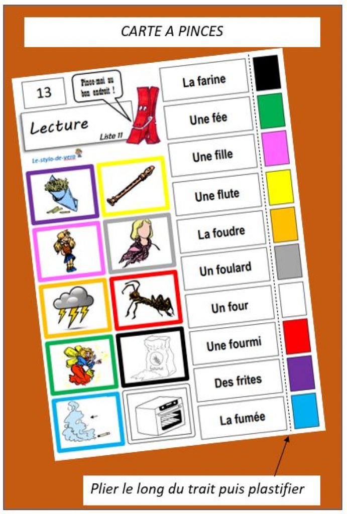 Pour fabriquer ces cartes à pinces il vous faut des ciseaux, une plastifieuse et 10 pinces à linge peintes avec 10 couleurs différentes.