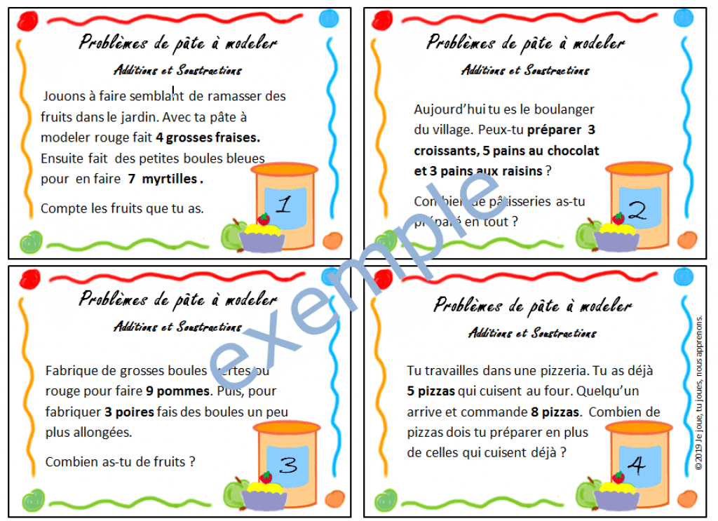 La première activité dans cette série de 4, va faire découvrir de façon progressive aux enfants les notions d’addition et de soustraction. Si le concept reste abstrait pour eux sur une feuille de papier, les problèmes concrets et faciles des cartes a taches les aideront à comprendre tout en jouant.