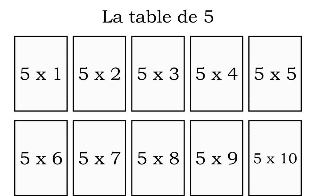 Il s’agit d’un jeu 90 cartes pour faciliter la mémorisation des tables de multiplication pour les élèves de CE2, CM1, et CM2.