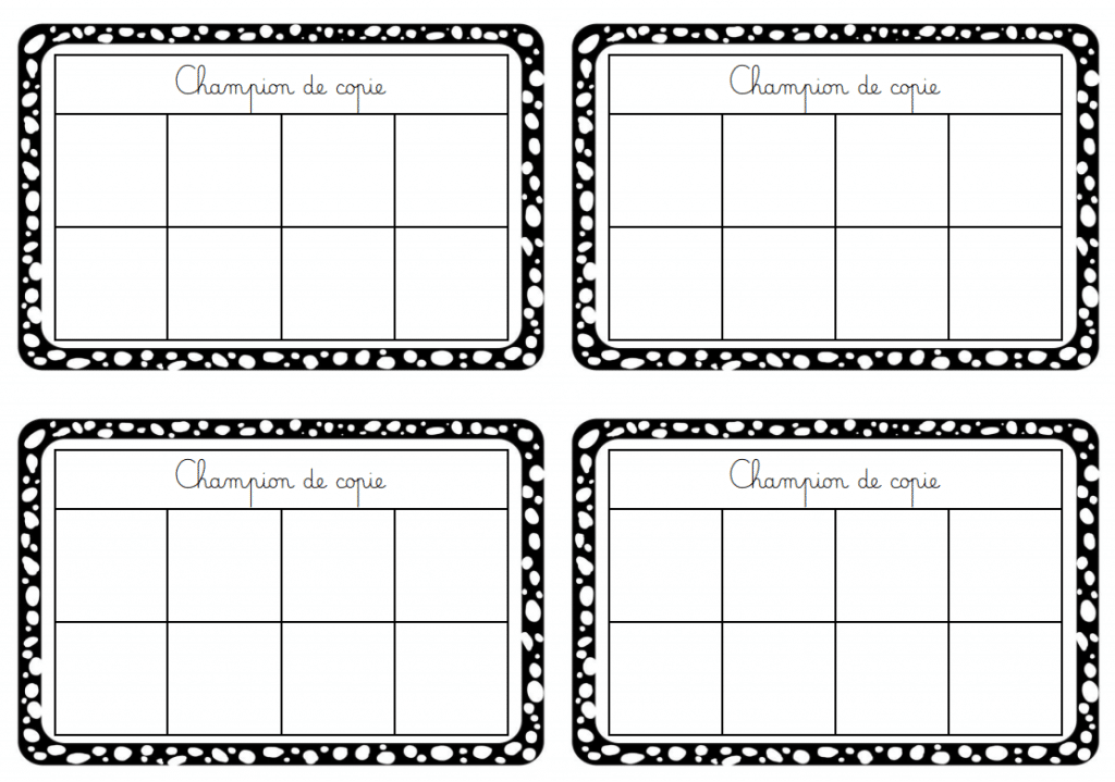 Une fiche récompense pour la copie (on peut mettre un tampon, un smiley, etc.) avec 8 cases.
