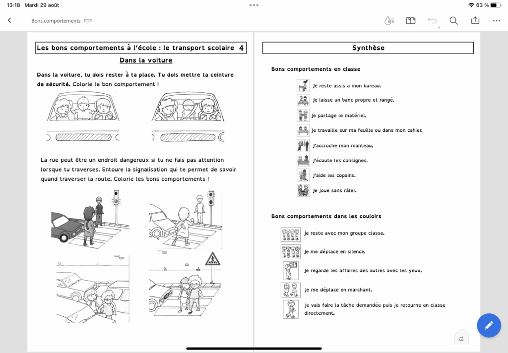 Pages 2 à 4 : les bons comportements en classe