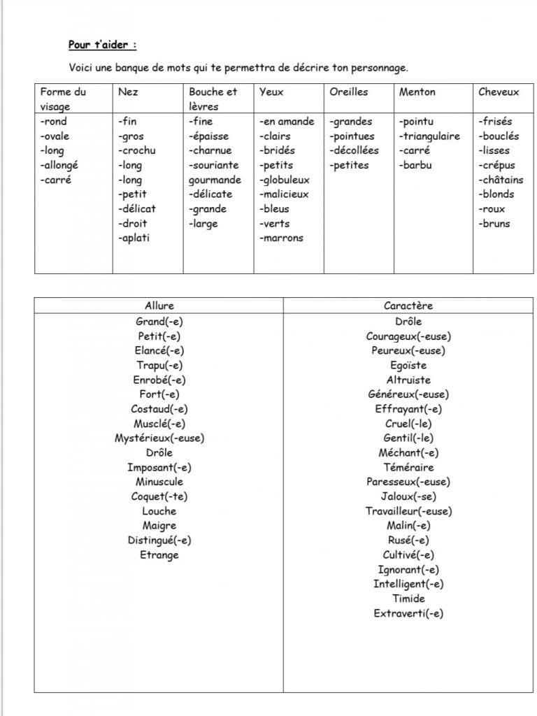 -Une rubrique « Pour t’aider » afin d’apporter aux élèves de la matière pour l’écriture de leur histoire (banques de mots, rappels, pistes de réflexions,…)