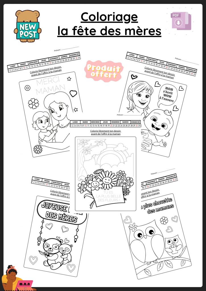 9 pages de coloriages offerts à l’occasion de la fête des mères