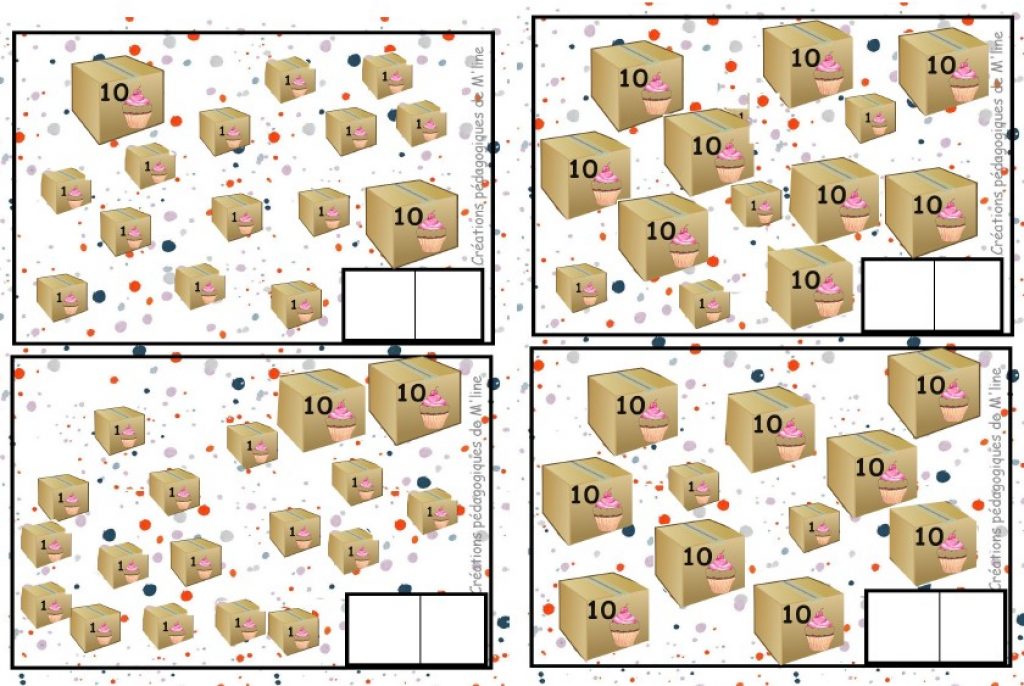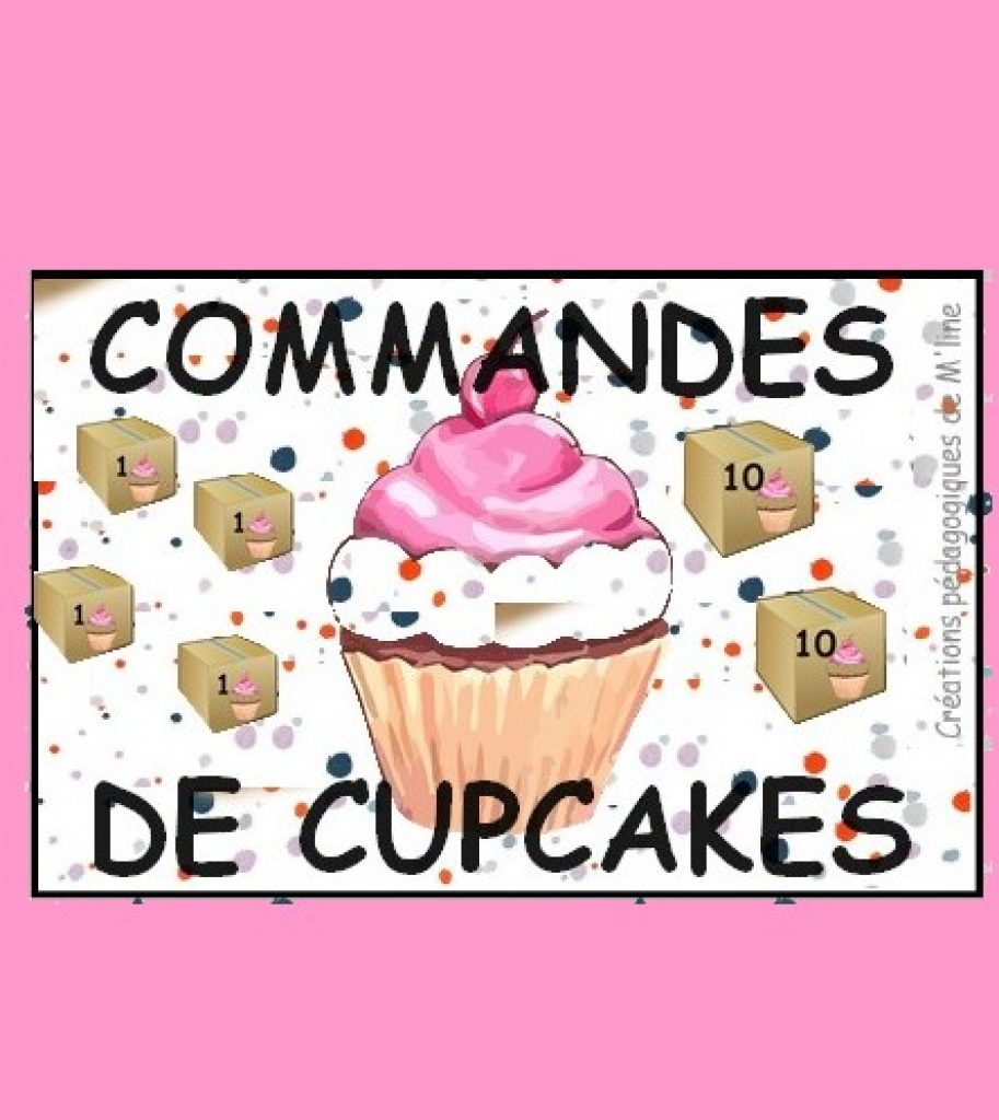 Version CP-début CE1 de La commande de croissants. Il s’agit pour els élèves d’utiliser leurs connaissances en numération pour calculer le nombre de cupcakes commandés.