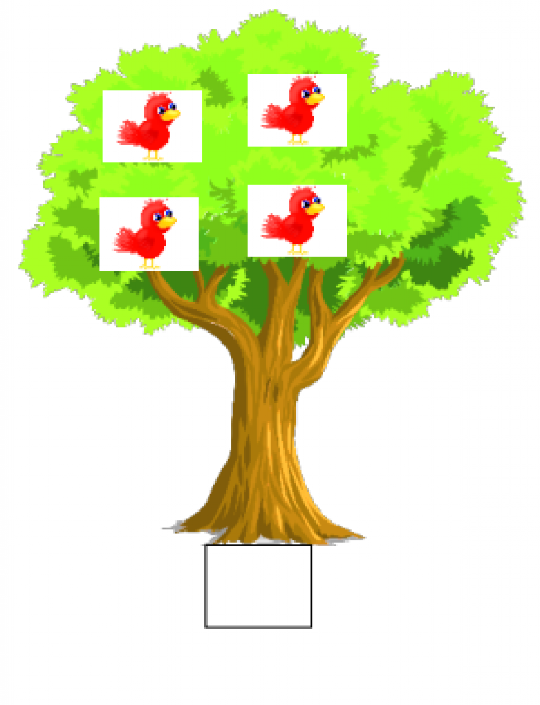 Il s’agit de trouver le nombre d’oiseaux manquant dans l’arbre pour en avoir 5,6,7 et puis 10