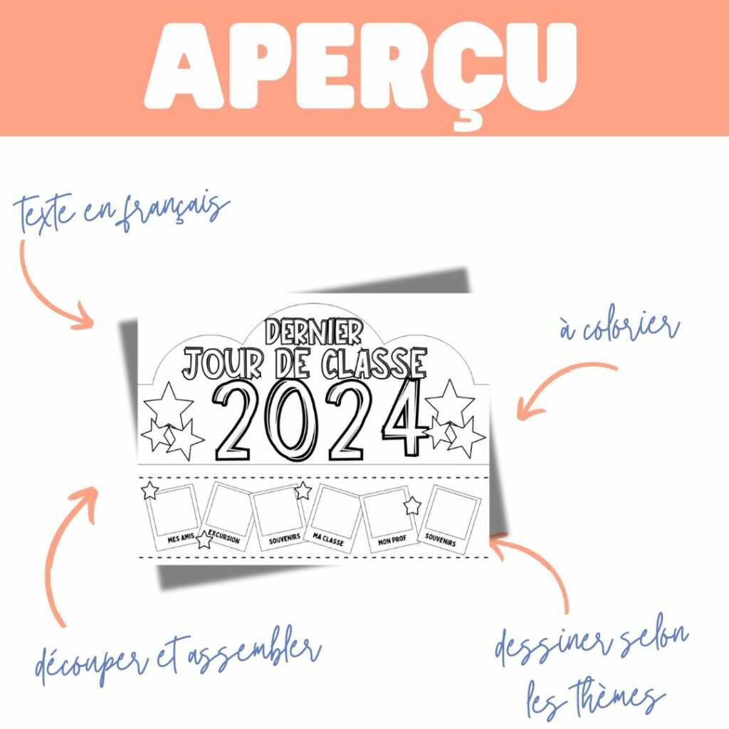 Distribuez ces modèles de couronnes amusantes à vos élèves pour qu’ils les portent le dernier jour d’école et de l’année scolaire ! Il suffit d’imprimer, de décorer, de découper, de coller sur une bande de papier (ou du papier construction assemblé) et d’agrafer !