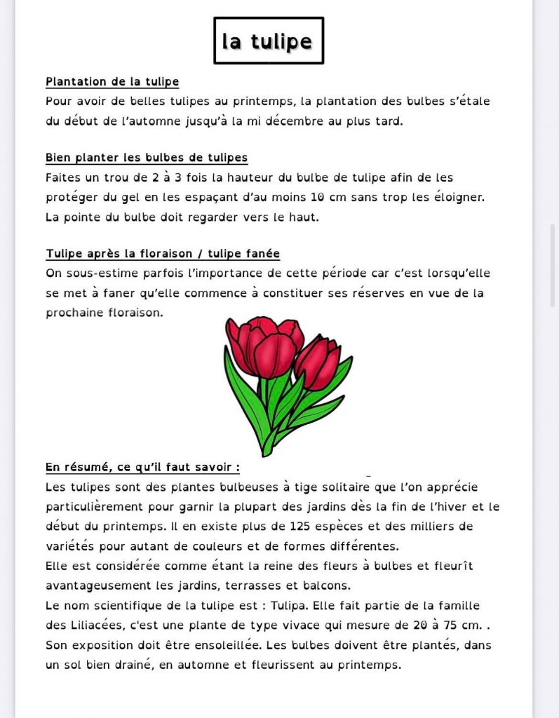 Page 7 : horticole sur la tulipe : infos nécessaires pour le quiz et la carte d’identité.