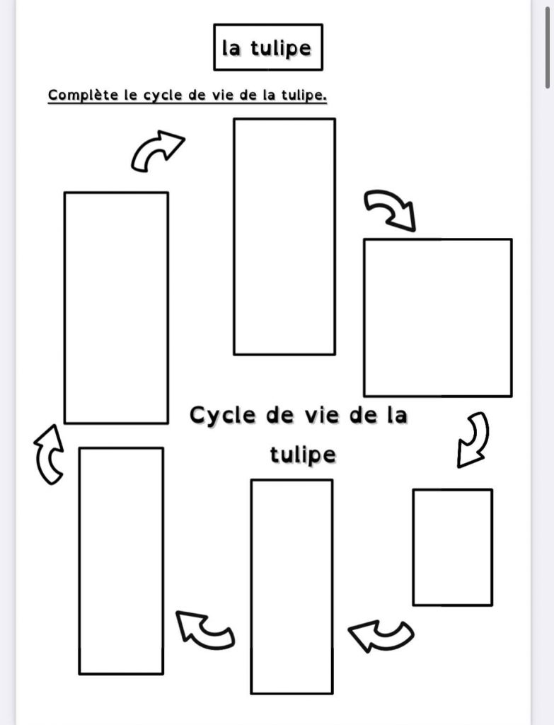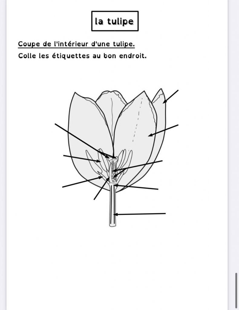 Page 11 : différentes parties de la tulipe N&B à compléter