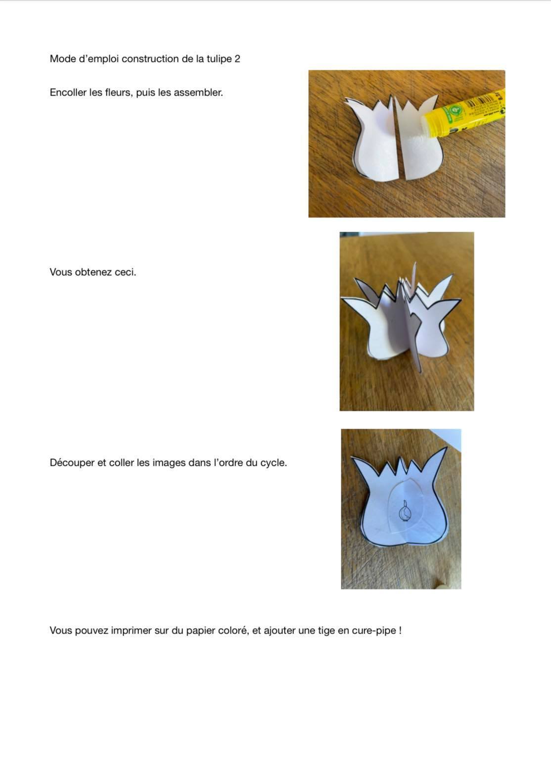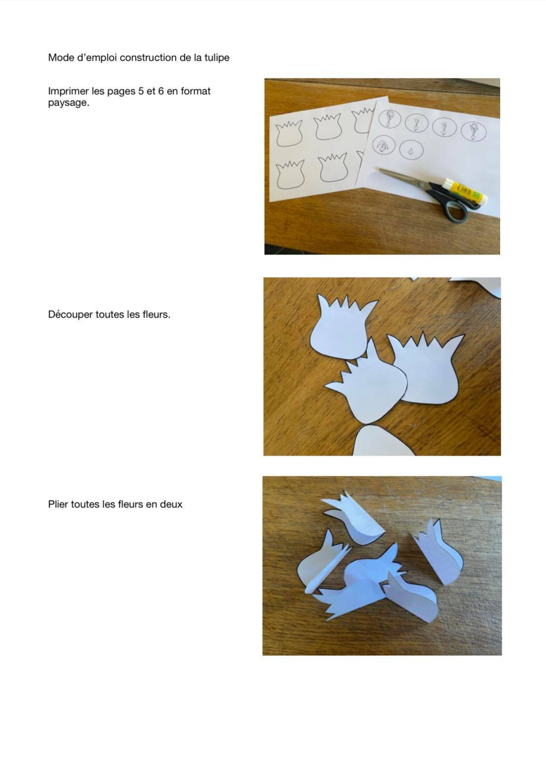 Pages 5 et 6 : mini lapbook (tulipe 3D): voir photos (montage et découpage faits par un élève)