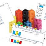 - 1 fiche pour chaque nombre de 2 à 10, sur 7 pages, comprenant le nombre exact de décompositions possibles : l’enfant sait reconnaître qu’il a terminé sa recherche quand il a rempli toutes les possibilités. Pour la manipulation, fournir les cubes empilables, dont les couleurs correspondront à chaque nombre