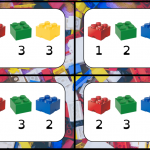J’ai ajouté deux fiches. La première peut servir de « bon de commande » pour le client. Elle peut aussi être un moyen de vérification: le client, une fois qu’il a récupéré tous les légos, dénombre chaque couleur et écrit le chiffre correspondant. Une fois sa fiche remplie, il la compare avec la carte du marchant. La dernière fiches permet d’aborder les additions.