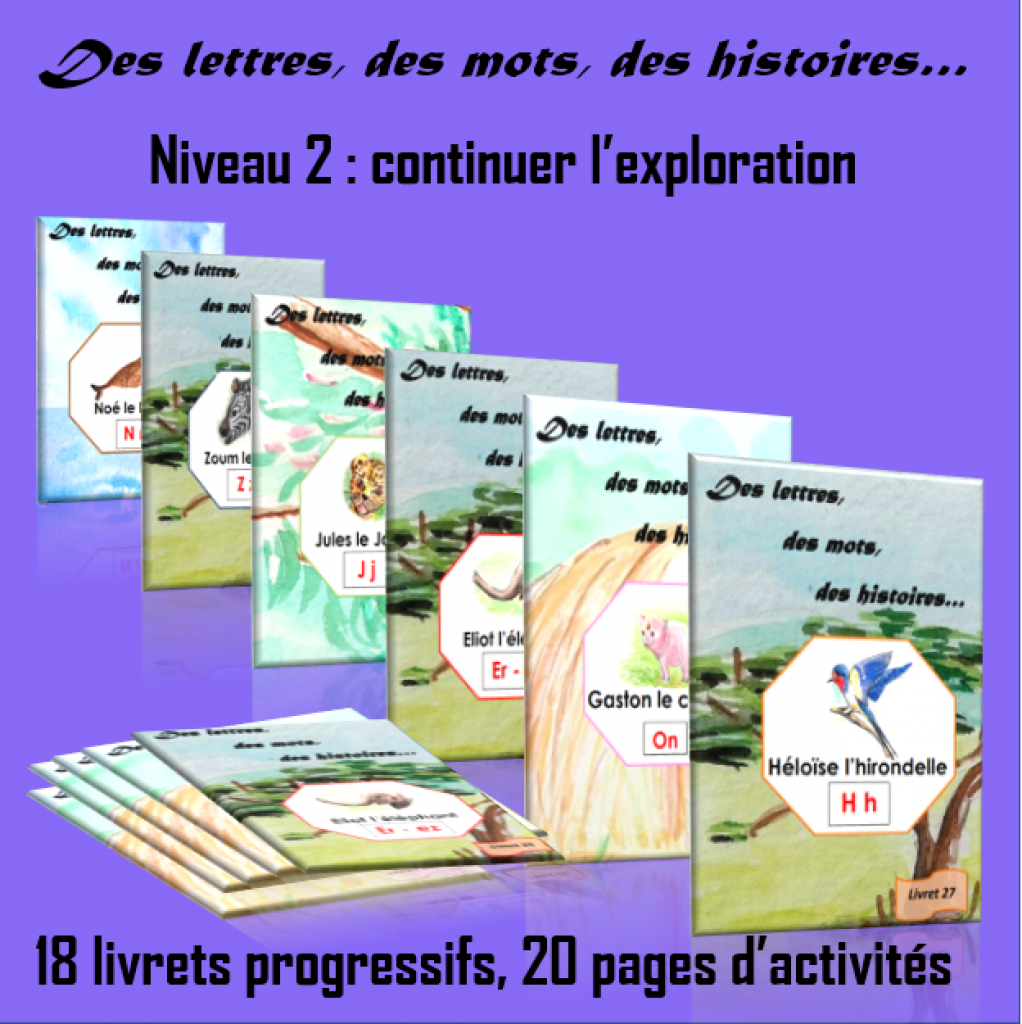 Le niveau 2 de la méthode de lecture « Des lettres, des mots, des histoires », comprend les livrets 13 à 30.