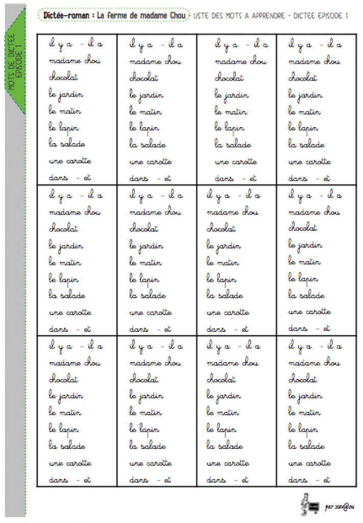 - Les 12 premières fiches de préparations avec : la dictée-épisode de la semaine, les 4 dictées préparatoires, quelques pistes de travail en grammaire/orthographe/conjugaison ;