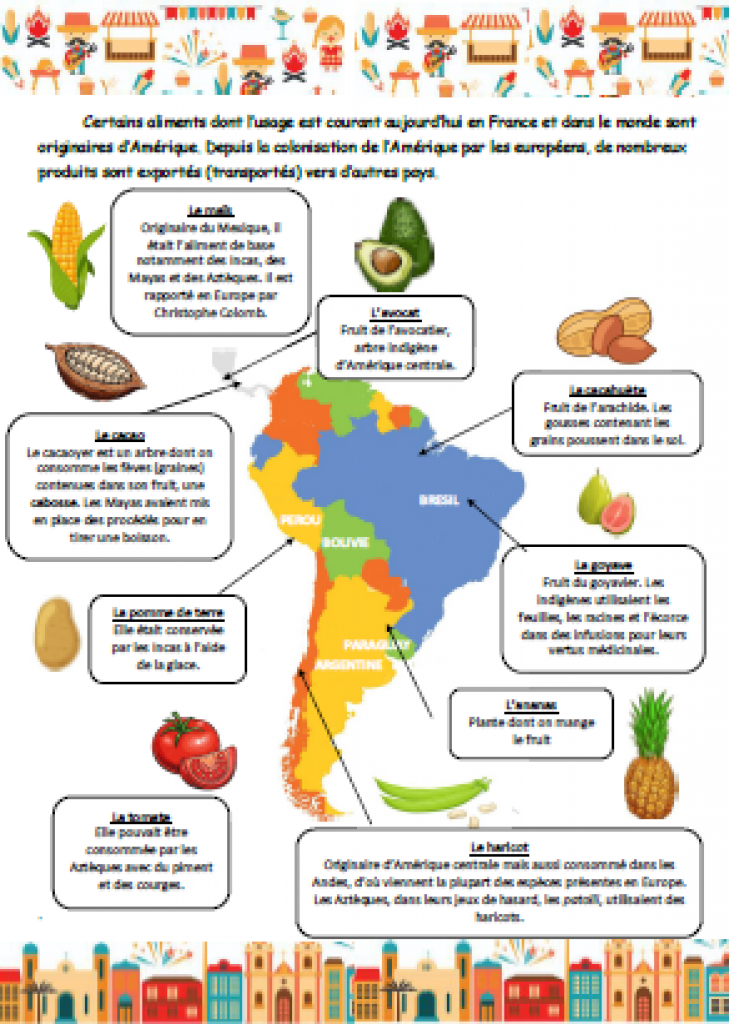– Une carte pour présenter chaque continent avec des plats typiques des pays ;