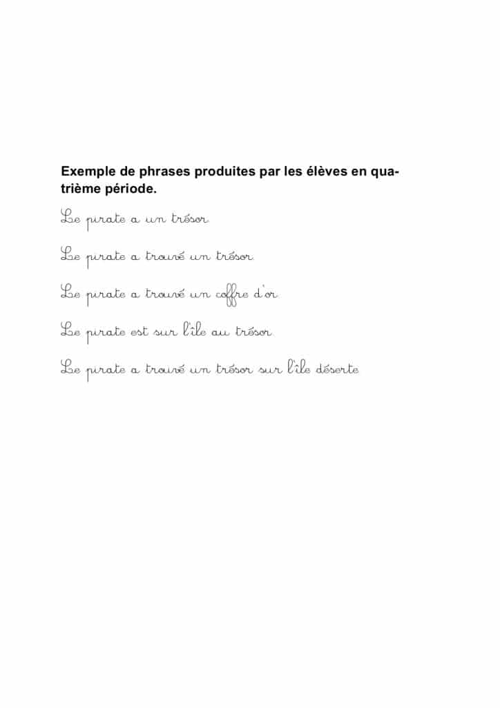 Il existe plusieurs solutions pour chaque exercice car l’enfant n’est pas obligé d’utiliser tous les mots et il peut aussi en ajouter.