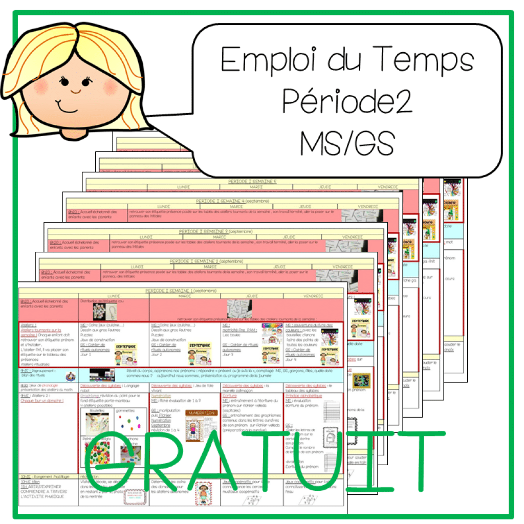 Vous pouvez télécharger l’ Emploi du temps de toutes les semaines de la deuxième période de ma classe, pour découvrir les activités que je vais présenter à mes élèves.