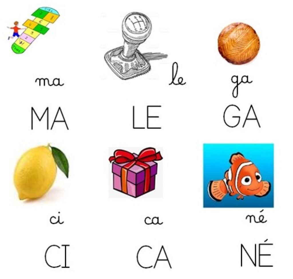 Chaque référent est une syllabe simple de 2 lettres (une consonne et une voyelle), première syllabe d’un mot tiré de la liste de Boisseau pour enfants de 5 ans, illustrée par une image qui sera reprise dans tous les exercices d’encodage.
