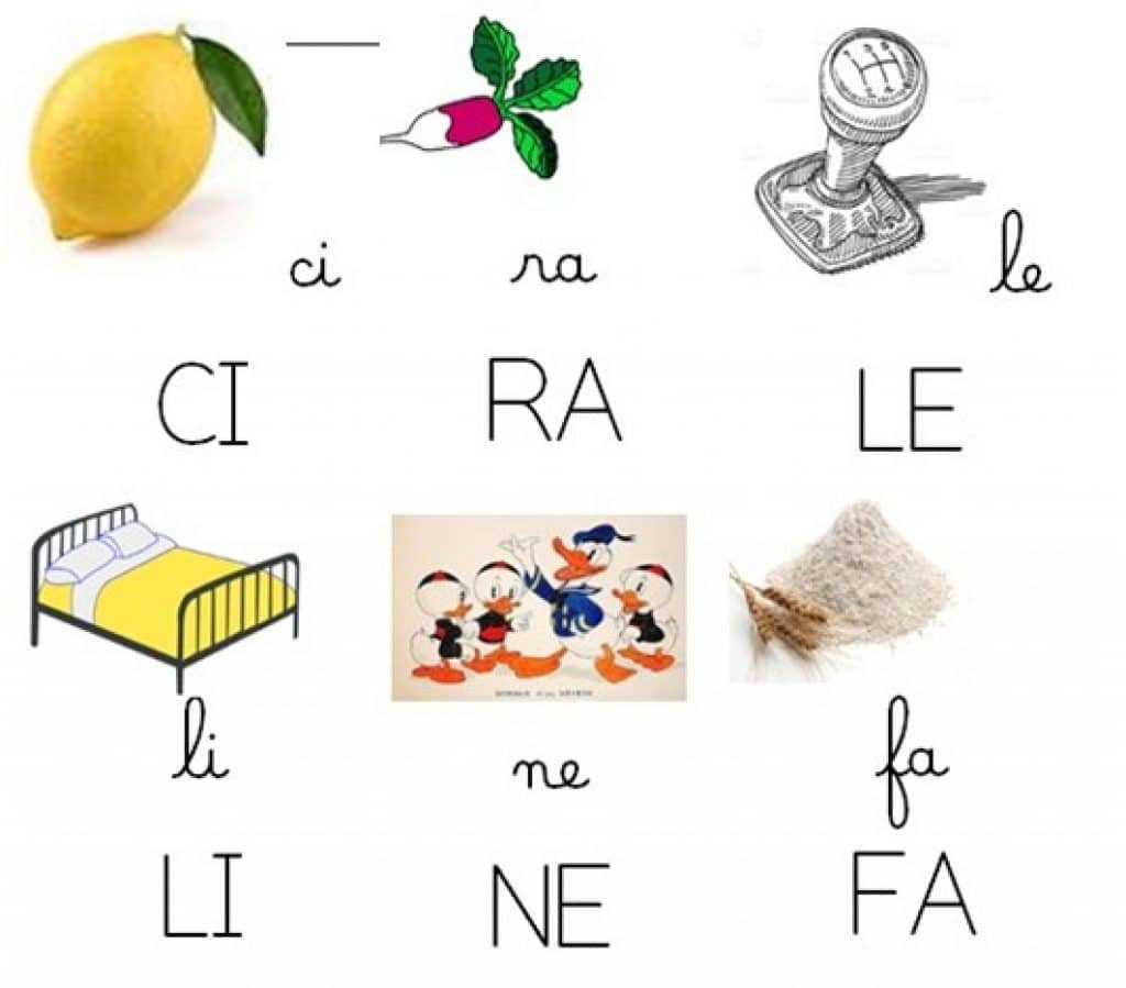 Vous recevrez 6 pages proposant l’encodage de mots de 3 syllabes, ayant des syllabes communes, avec 6 syllabes pour chaque mot (3 à sélectionner, 3 à éliminer). Le mot à encoder est proposé en image , et en devinette. Il s’agira de remettre les syllabes dans l’ordre, puis de copier le mot avec ou sans l’aide des syllabes, au choix selon les compétences de chacun.