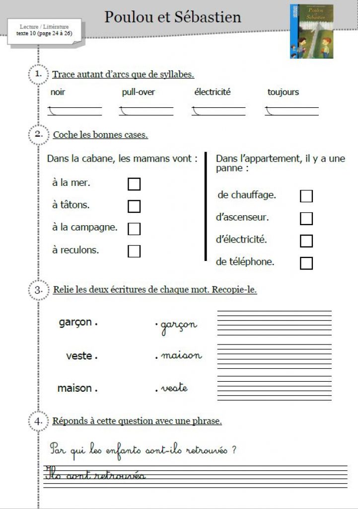 Ce fichier est en lien avec l’album « Poulou et Sébatien » pour un apprentissage de la lecture. Le jour 1, l’épisode est découvert avec les apprentis lecteurs, et le lendemain, après un rappel de l’épisode lu la veille, les exercices correspondants de ce fichier peuvent être proposés.