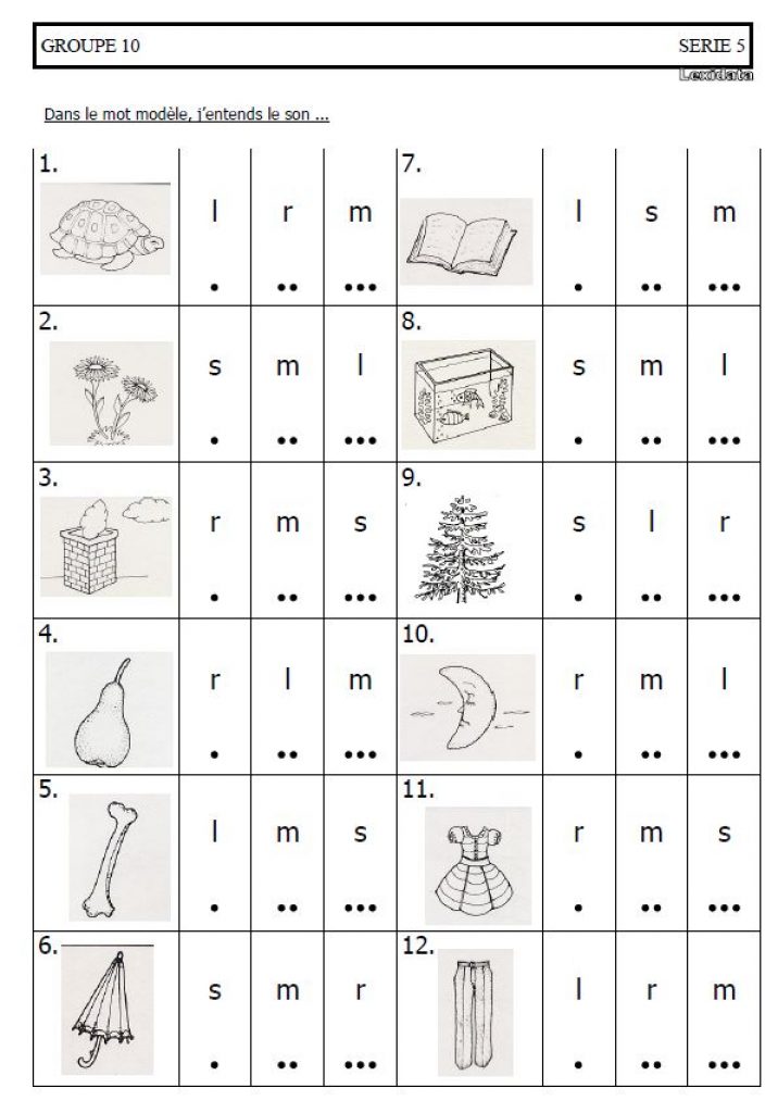 L’élève doit trouver, parmi 3 sons différents, lequel est le son présent dans le mot modèle.