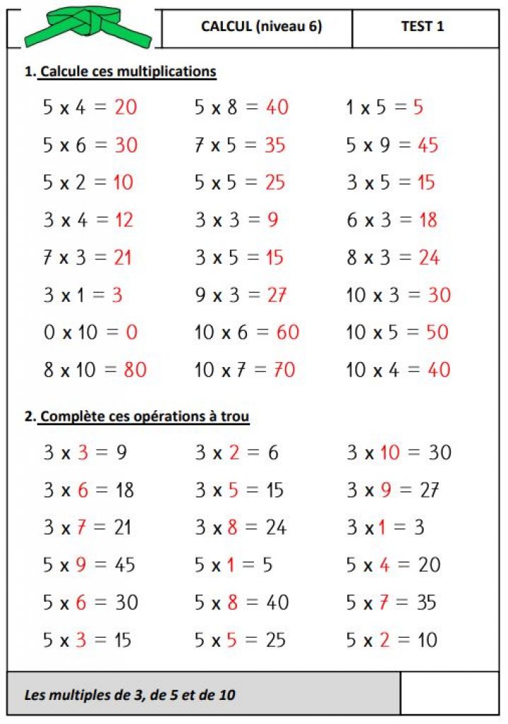 Pour chaque niveaux ou séries  (1 et 2), (3 et 4), (5 et 6), (7 et 8), les élèves progression dans leur ceinture de couleurs (blanc – jaune – orange – vert – bleu – rouge) en fonction du nombre de fiches validées.