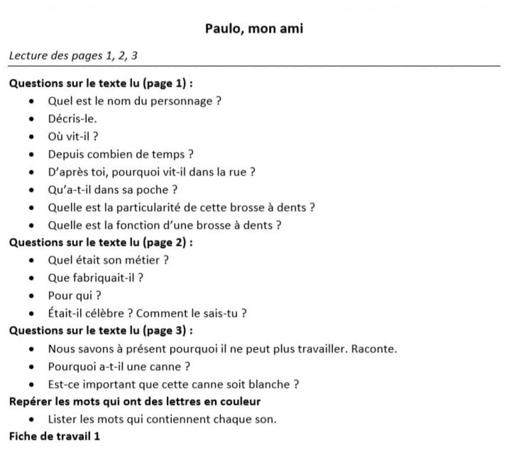 L’album de lecture « Paulo mon ami » sera lu en 6 étapes.