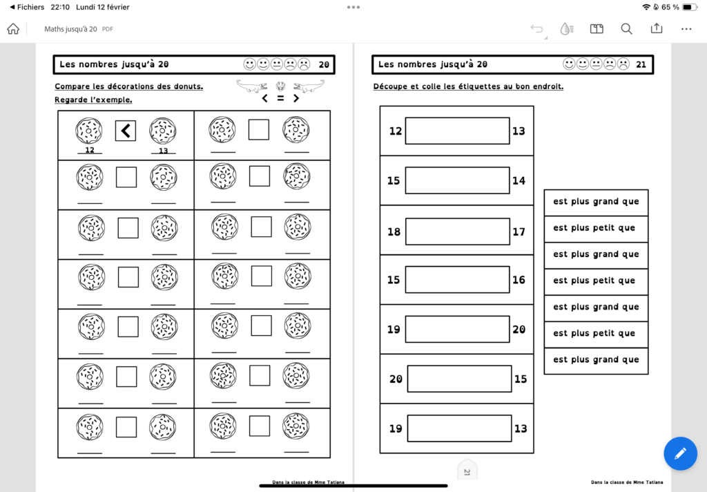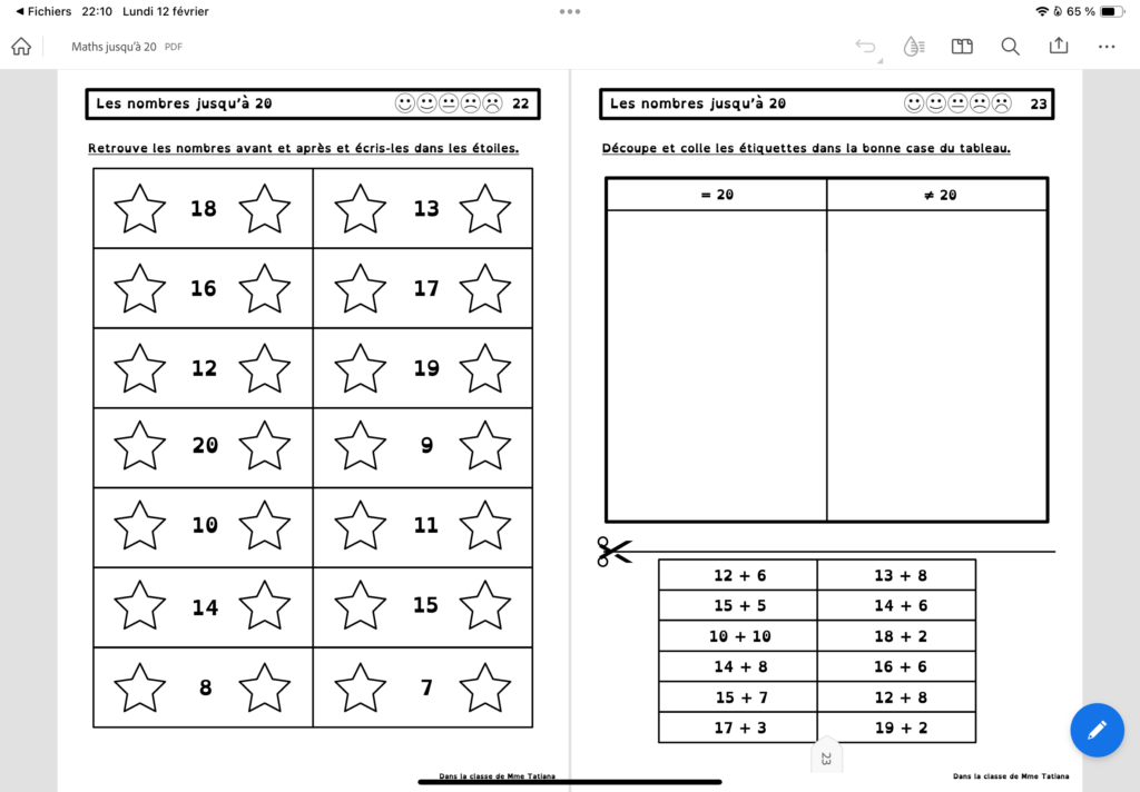 Mes élèves étant en difficulté avec les nombres jusqu’à 20, j’ai décidé de leur faire une nouvelle série d’exercices pour les aider à franchir ce cap !