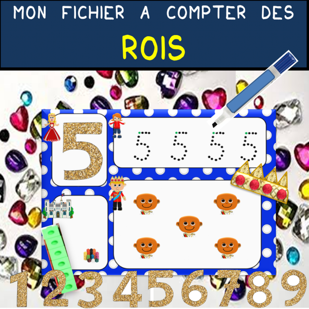 -aller chercher « juste ce qu’il faut de couronnes pour que tous les petits ROIS aient chacun leur couronne » (Le fait d’éloigner les couronnes de l’enfant ( il doit aller les chercher) lui permet de travailler la mémorisation et la notion de construction de quantité : il en faut « juste ce qu’il faut: pas plus, pas moins… »)