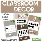 Ces affiches de nombres en français anglais et espagnol sont un visuel clair à afficher dans votre classe. Ces couleurs boho neutres modernes sont parfaites pour créer un environnement d’apprentissage calme | Numéros | Números