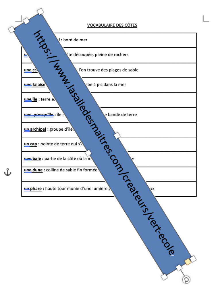 – 3 listes de vocabulaire sur les montagnes, les côtes et les cours d’eau (mots + définitions à connaître)