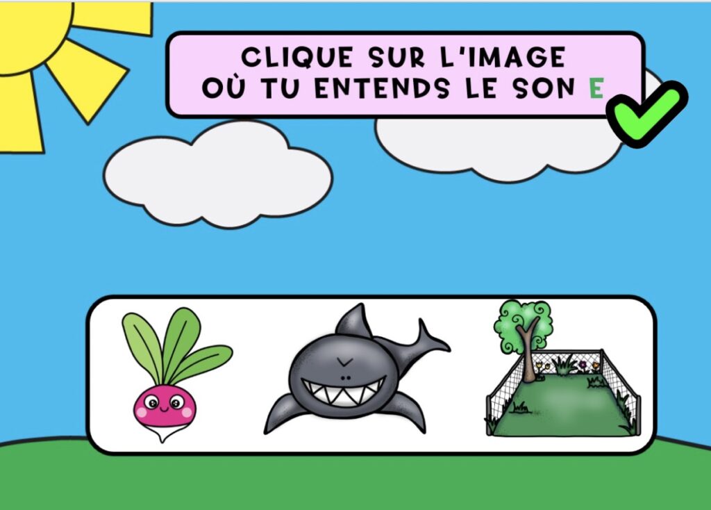 il clique sur les mots qui contiennent le son eil reconnait la lettre eIl clique sur le nombre de syllables dans les mots